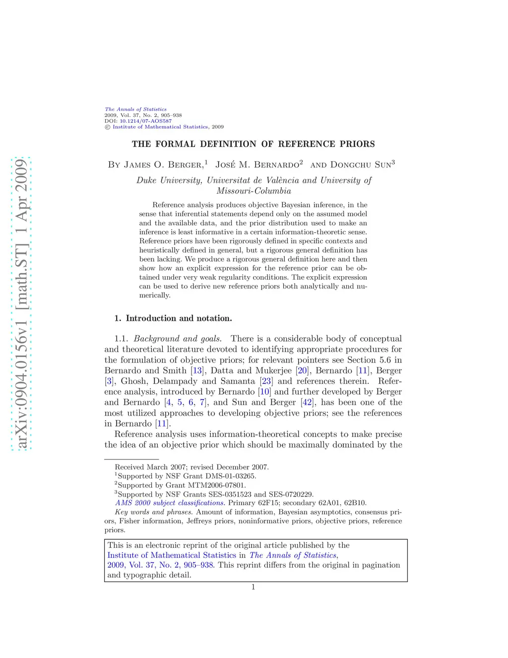 Reference analysis produces objective Bayesian inference, in the sense that inferential statements depend only on the assumed model and the available data, and the prior distribution used to make an inference is least informative in a certain information-theoretic sense. Reference priors have been rigorously defined in specific contexts and heuristically defined in general, but a rigorous general definition has been lacking. We produce a rigorous general definition here and then show how an explicit expression for the reference prior can be obtained under very weak regularity conditions. The explicit expression can be used to derive new reference priors both analytically and numerically.