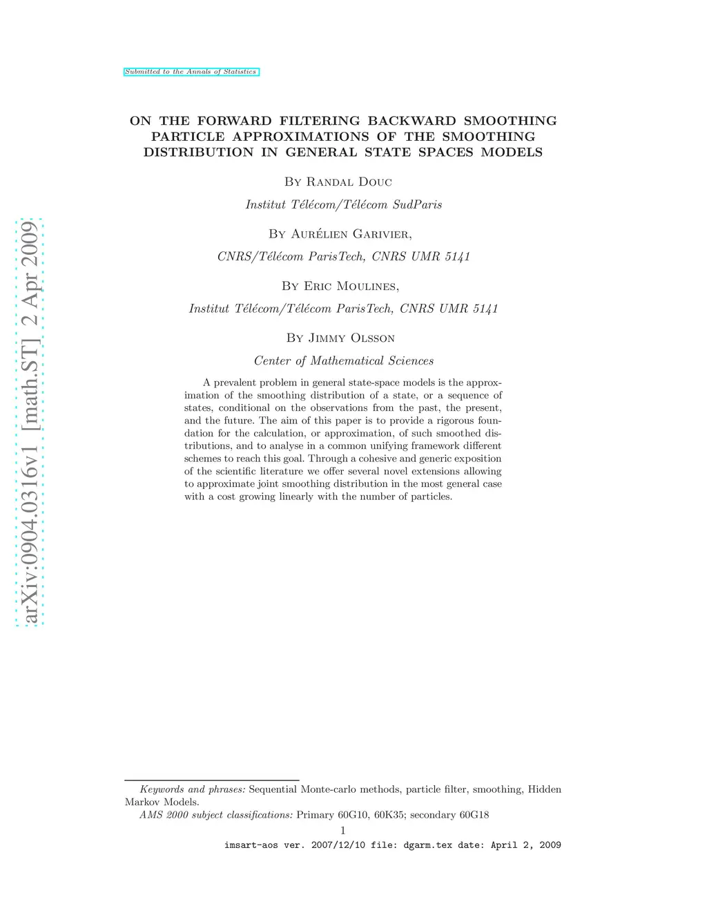 the smoothing distribution in general state spaces models