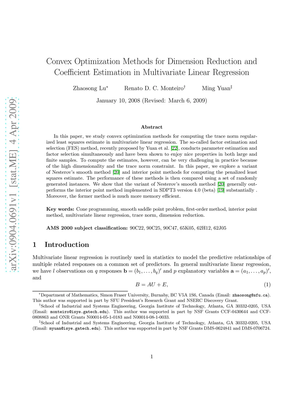 Convex Optimization Methods for Dimension Reduction and Coefficient