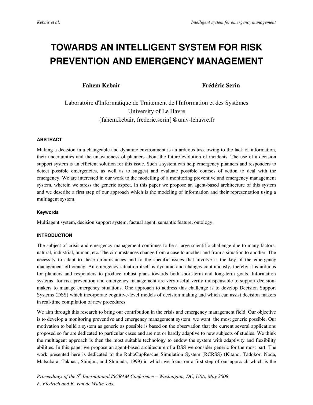 Making a decision in a changeable and dynamic environment is an arduous task owing to the lack of information, their uncertainties and the unawareness of planners about the future evolution of incidents. The use of a decision support system is an efficient solution of this issue. Such a system can help emergency planners and responders to detect possible emergencies, as well as to suggest and evaluate possible courses of action to deal with the emergency. We are interested in our work to the modeling of a monitoring preventive and emergency management system, wherein we stress the generic aspect. In this paper we propose an agent-based architecture of this system and we describe a first step of our approach which is the modeling of information and their representation using a multiagent system.