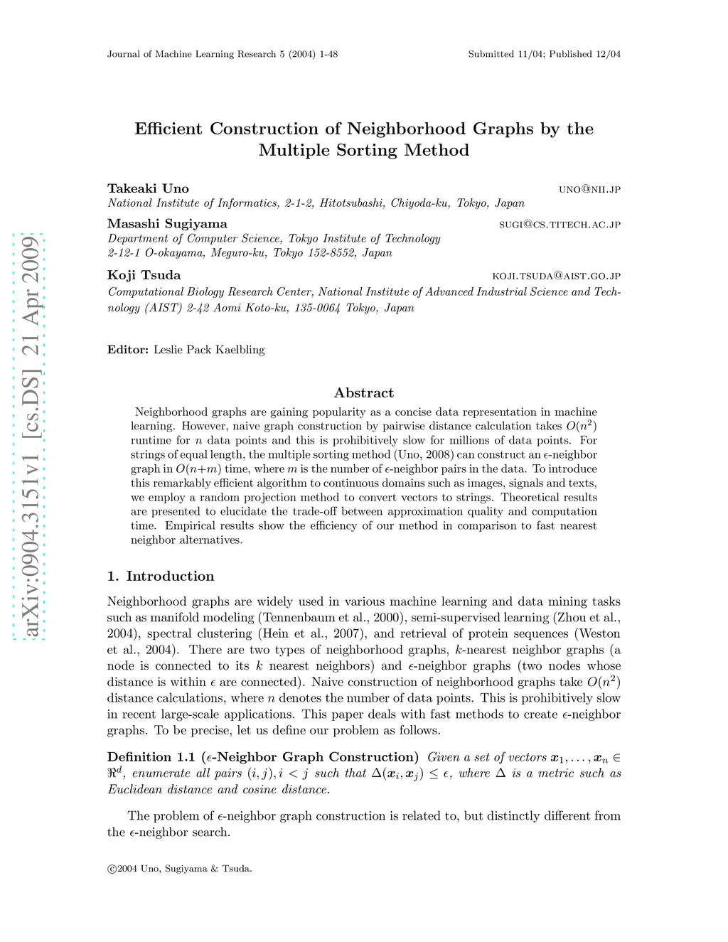 Efficient Construction of Neighborhood Graphs by the Multiple Sorting