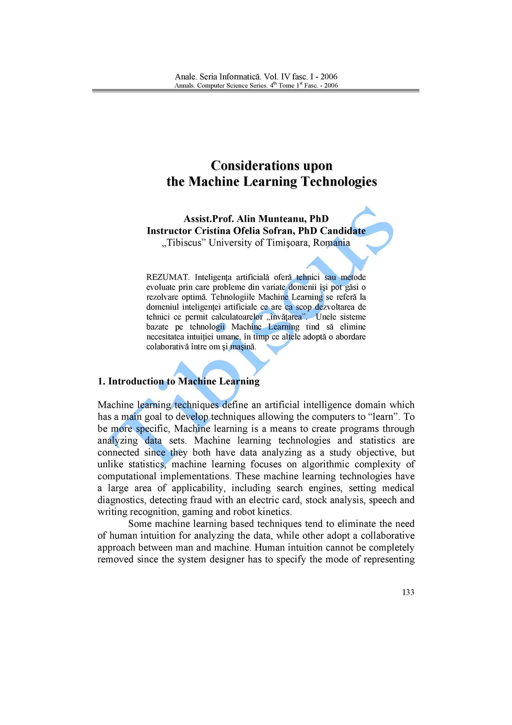 Considerations upon the Machine Learning Technologies