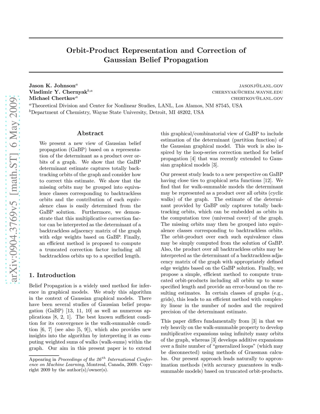 We present a new view of Gaussian belief propagation (GaBP) based on a representation of the determinant as a product over orbits of a graph. We show that the GaBP determinant estimate captures totally backtracking orbits of the graph and consider how to correct this estimate. We show that the missing orbits may be grouped into equivalence classes corresponding to backtrackless orbits and the contribution of each equivalence class is easily determined from the GaBP solution. Furthermore, we demonstrate that this multiplicative correction factor can be interpreted as the determinant of a backtrackless adjacency matrix of the graph with edge weights based on GaBP. Finally, an efficient method is proposed to compute a truncated correction factor including all backtrackless orbits up to a specified length.