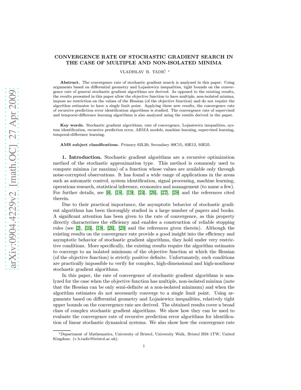 The convergence rate of stochastic gradient search is analyzed in this paper. Using arguments based on differential geometry and Lojasiewicz inequalities, tight bounds on the convergence rate of general stochastic gradient algorithms are derived. As opposed to the existing results, the results presented in this paper allow the objective function to have multiple, non-isolated minima, impose no restriction on the values of the Hessian (of the objective function) and do not require the algorithm estimates to have a single limit point. Applying these new results, the convergence rate of recursive prediction error identification algorithms is studied. The convergence rate of supervised and temporal-difference learning algorithms is also analyzed using the results derived in the paper.