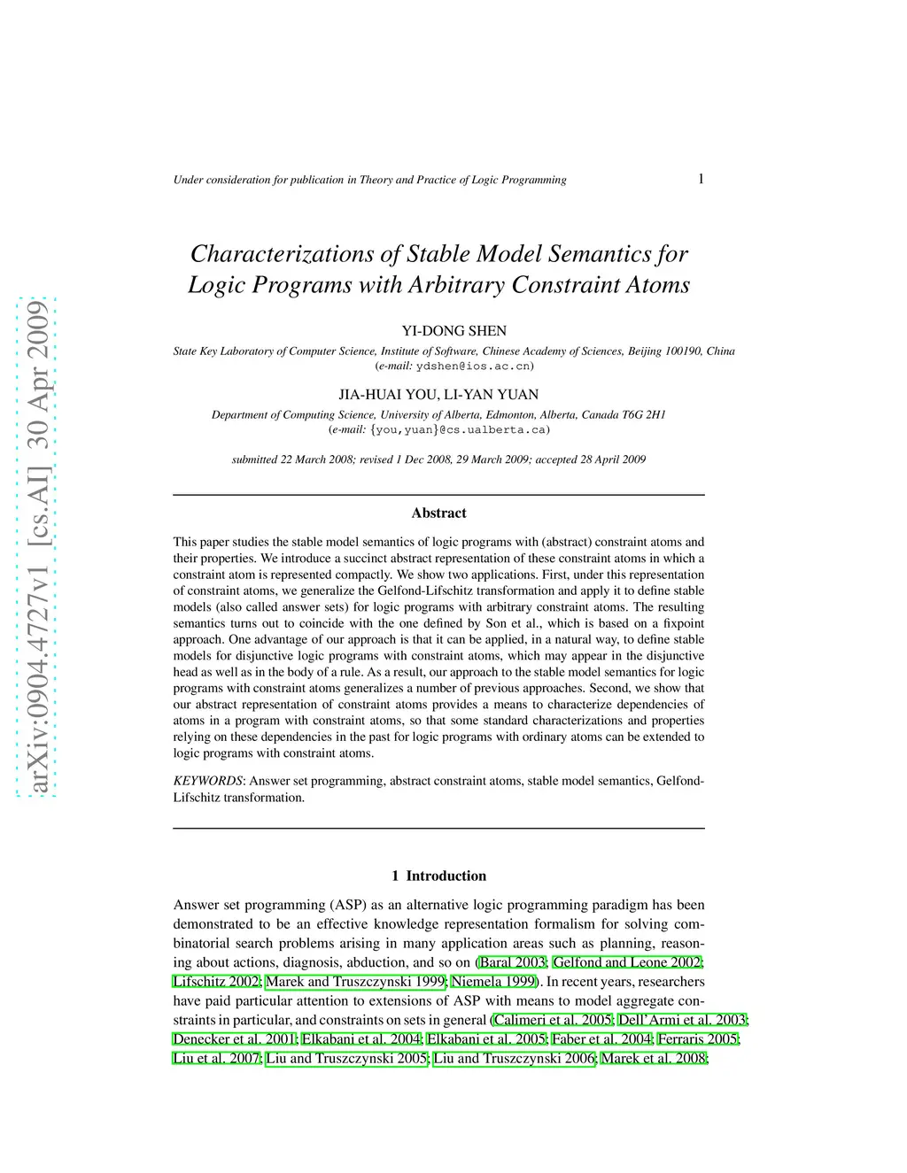 This paper studies the stable model semantics of logic programs with (abstract) constraint atoms and their properties. We introduce a succinct abstract representation of these constraint atoms in which a constraint atom is represented compactly. We show two applications. First, under this representation of constraint atoms, we generalize the Gelfond-Lifschitz transformation and apply it to define stable models (also called answer sets) for logic programs with arbitrary constraint atoms. The resulting semantics turns out to coincide with the one defined by Son et al., which is based on a fixpoint approach. One advantage of our approach is that it can be applied, in a natural way, to define stable models for disjunctive logic programs with constraint atoms, which may appear in the disjunctive head as well as in the body of a rule. As a result, our approach to the stable model semantics for logic programs with constraint atoms generalizes a number of previous approaches. Second, we show that our abstract representation of constraint atoms provides a means to characterize dependencies of atoms in a program with constraint atoms, so that some standard characterizations and properties relying on these dependencies in the past for logic programs with ordinary atoms can be extended to logic programs with constraint atoms.