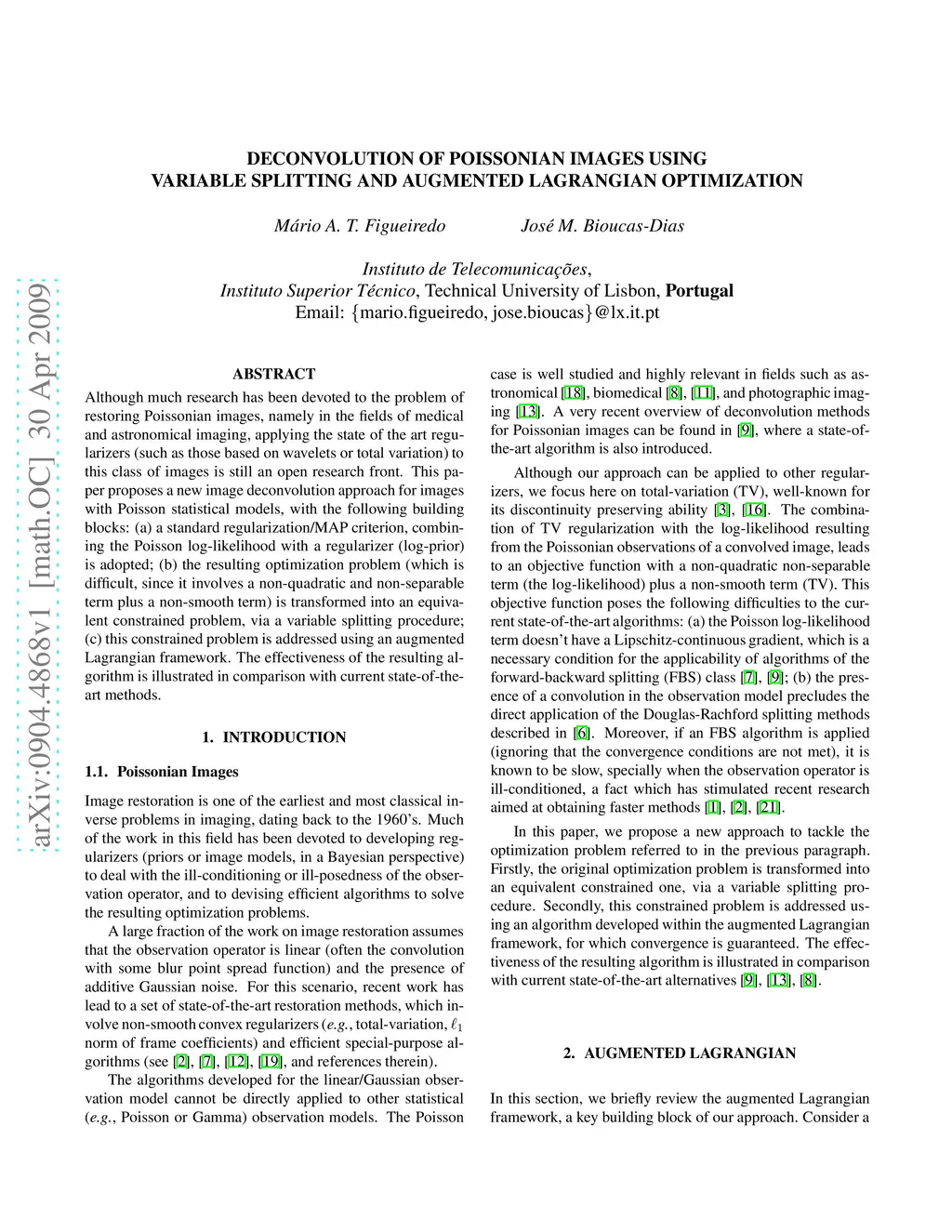 Deconvolution of Poissonian Images Using Variable Splitting and