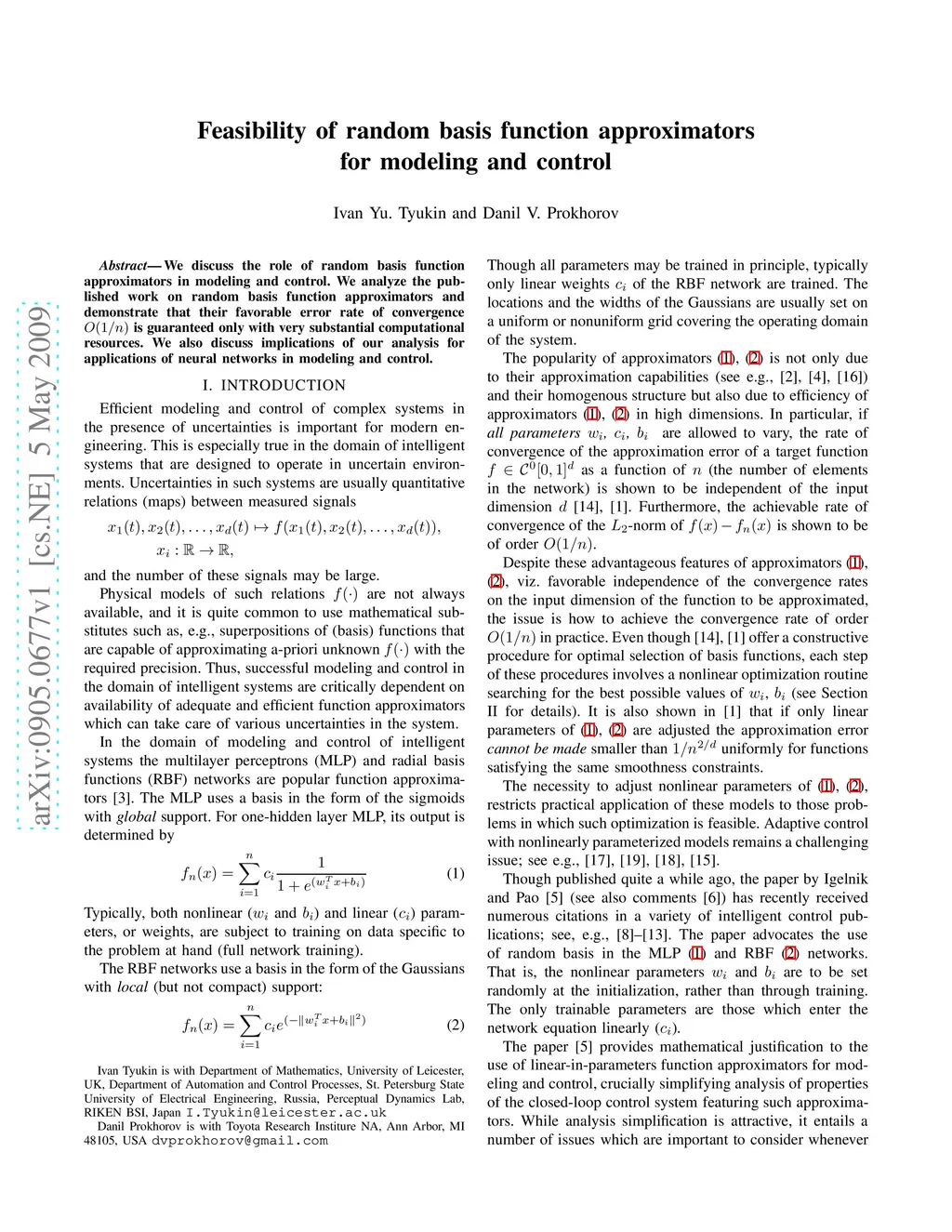 Feasibility of random basis function approximators for modeling and