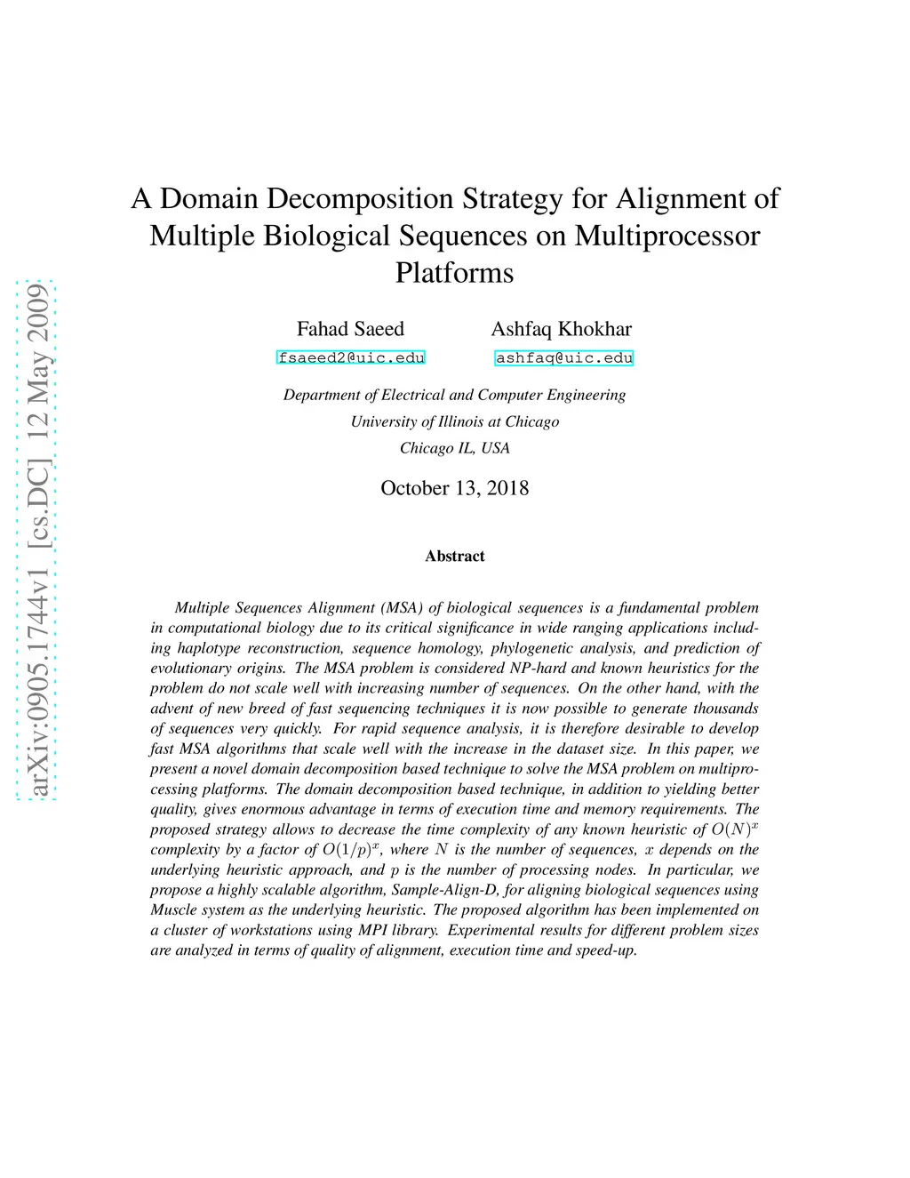 A Domain Decomposition Strategy for Alignment of Multiple Biological