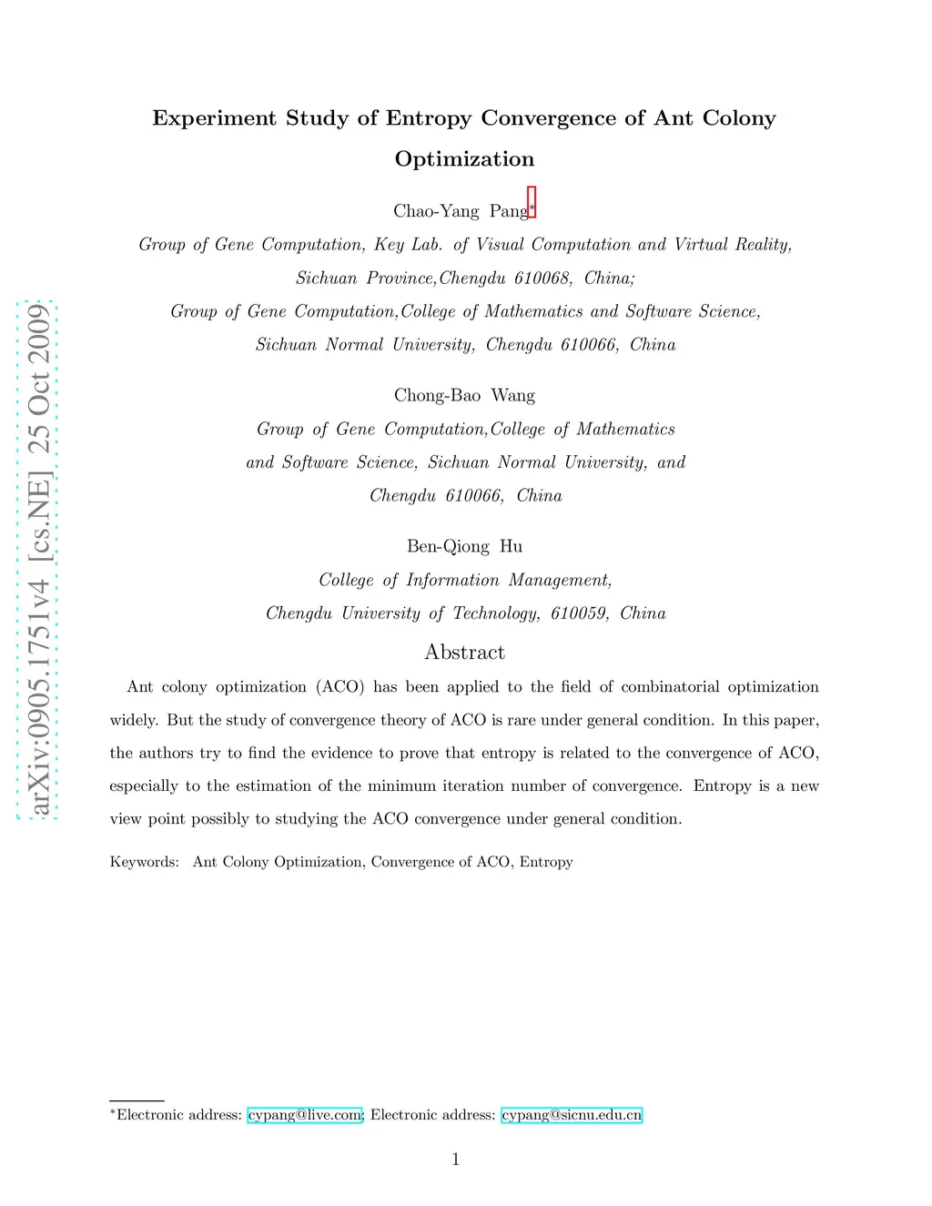 Experiment Study of Entropy Convergence of Ant Colony Optimization