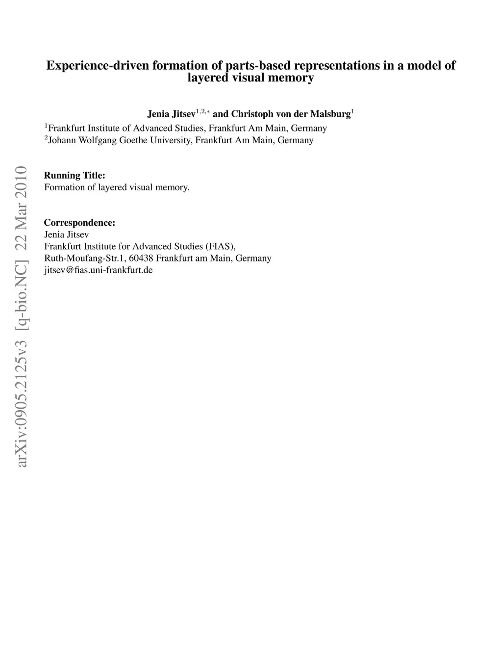 Growing neuropsychological and neurophysiological evidence suggests that the visual cortex uses parts-based representations to encode, store and retrieve relevant objects. In such a scheme, objects are represented as a set of spatially distributed local features, or parts, arranged in stereotypical fashion. To encode the local appearance and to represent the relations between the constituent parts, there has to be an appropriate memory structure formed by previous experience with visual objects. Here, we propose a model how a hierarchical memory structure supporting efficient storage and rapid recall of parts-based representations can be established by an experience-driven process of self-organization. The process is based on the collaboration of slow bidirectional synaptic plasticity and homeostatic unit activity regulation, both running at the top of fast activity dynamics with winner-take-all character modulated by an oscillatory rhythm. These neural mechanisms lay down the basis for cooperation and competition between the distributed units and their synaptic connections. Choosing human face recognition as a test task, we show that, under the condition of open-ended, unsupervised incremental learning, the system is able to form memory traces for individual faces in a parts-based fashion. On a lower memory layer the synaptic structure is developed to represent local facial features and their interrelations, while the identities of different persons are captured explicitly on a higher layer. An additional property of the resulting representations is the sparseness of both the activity during the recall and the synaptic patterns comprising the memory traces.