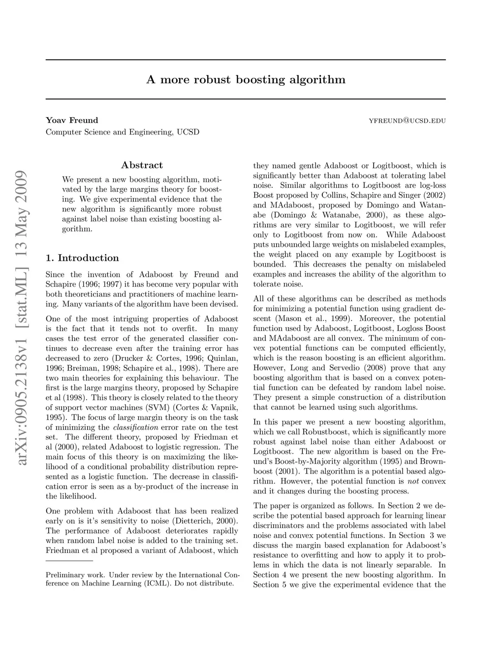 We present a new boosting algorithm, motivated by the large margins theory for boosting. We give experimental evidence that the new algorithm is significantly more robust against label noise than existing boosting algorithm.