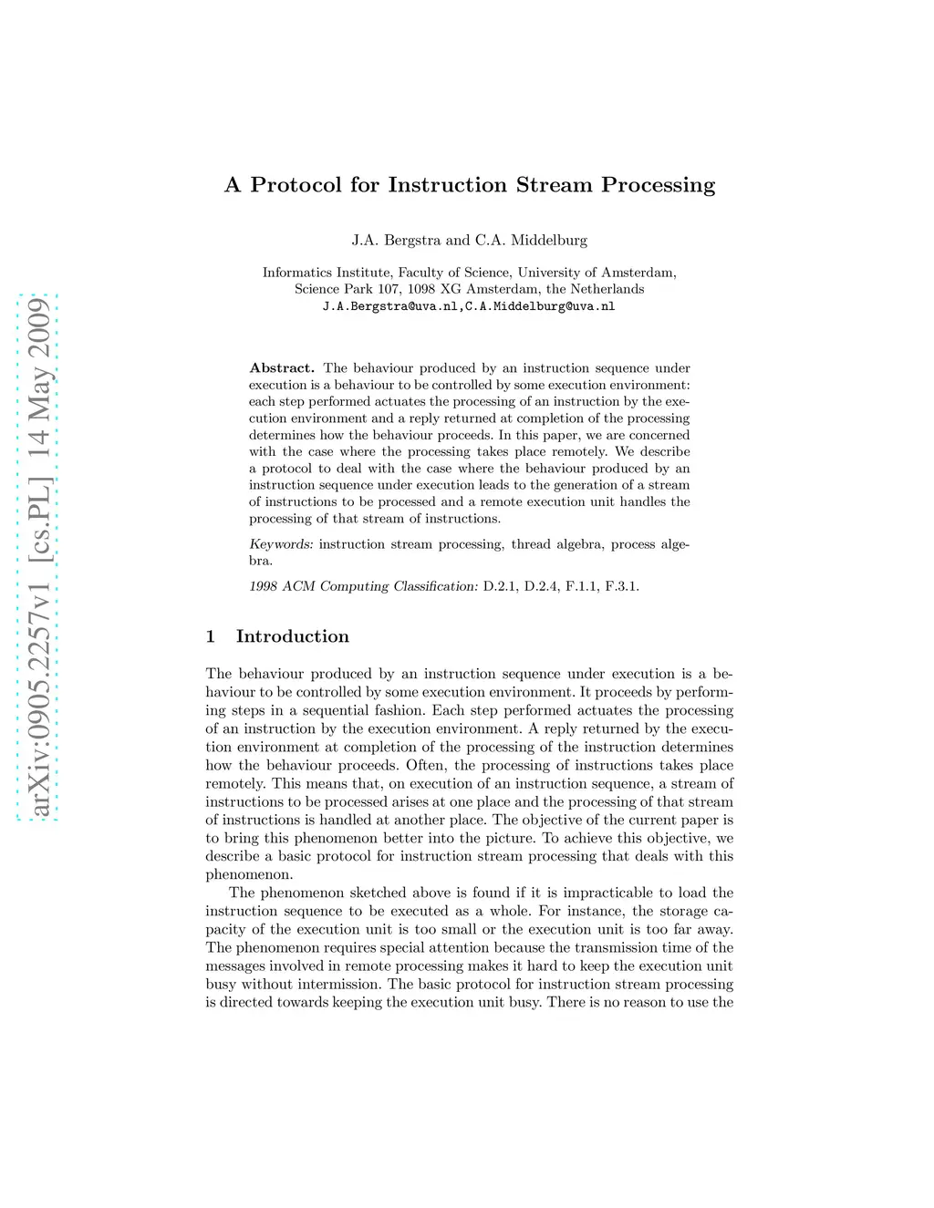 A protocol for instruction stream processing