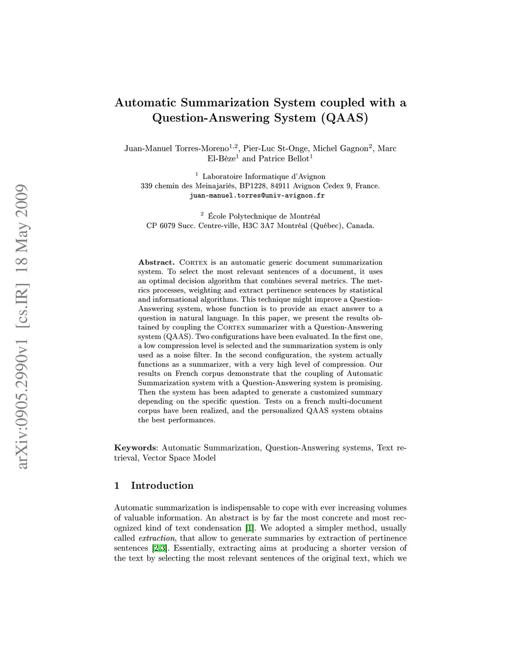 Automatic Summarization System coupled with a Question-Answering System