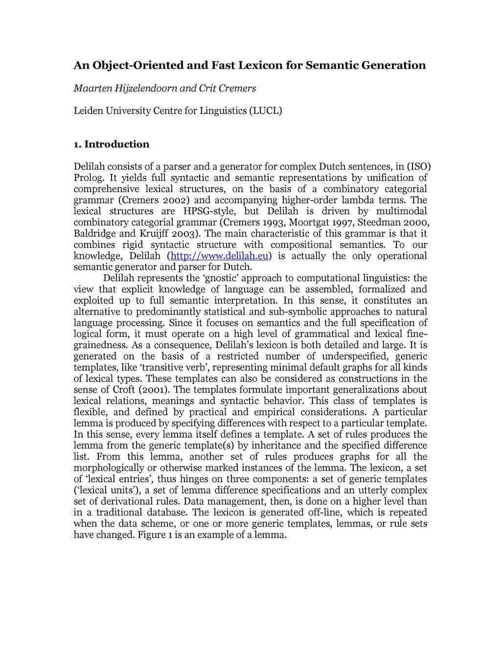 An Object-Oriented and Fast Lexicon for Semantic Generation
