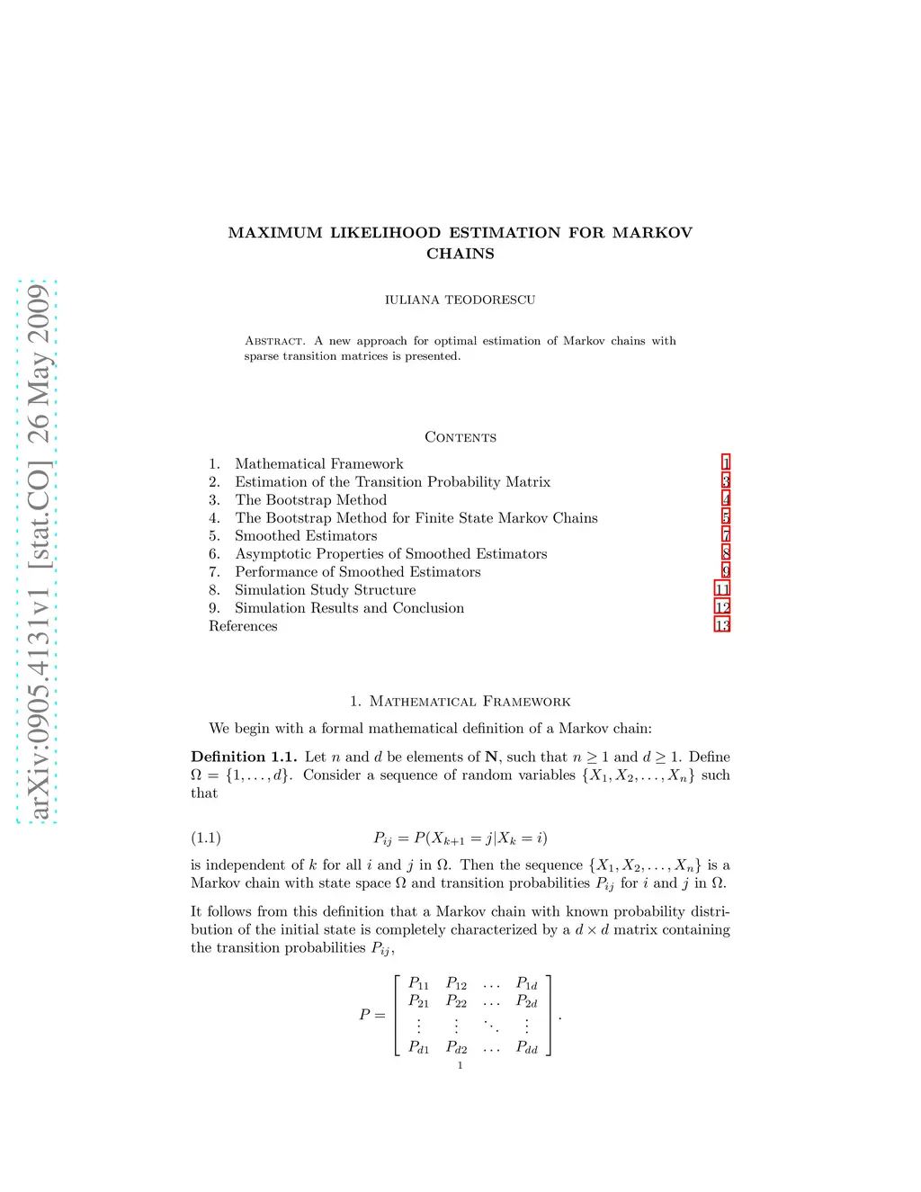 A new approach for optimal estimation of Markov chains with sparse transition matrices is presented.