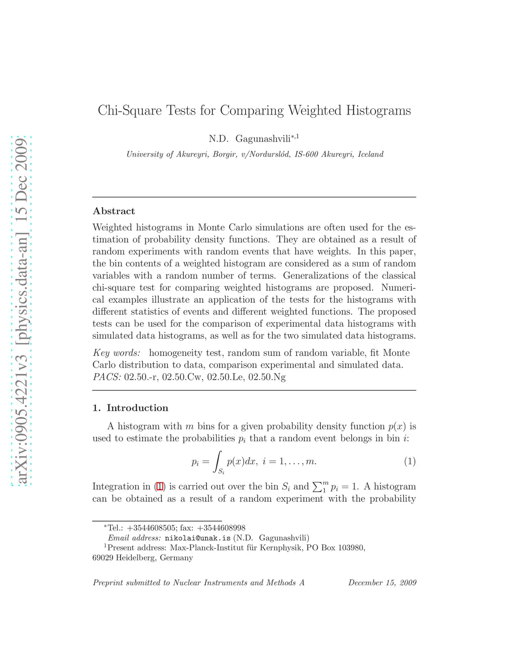 Chi-Square Tests for Comparing Weighted Histograms