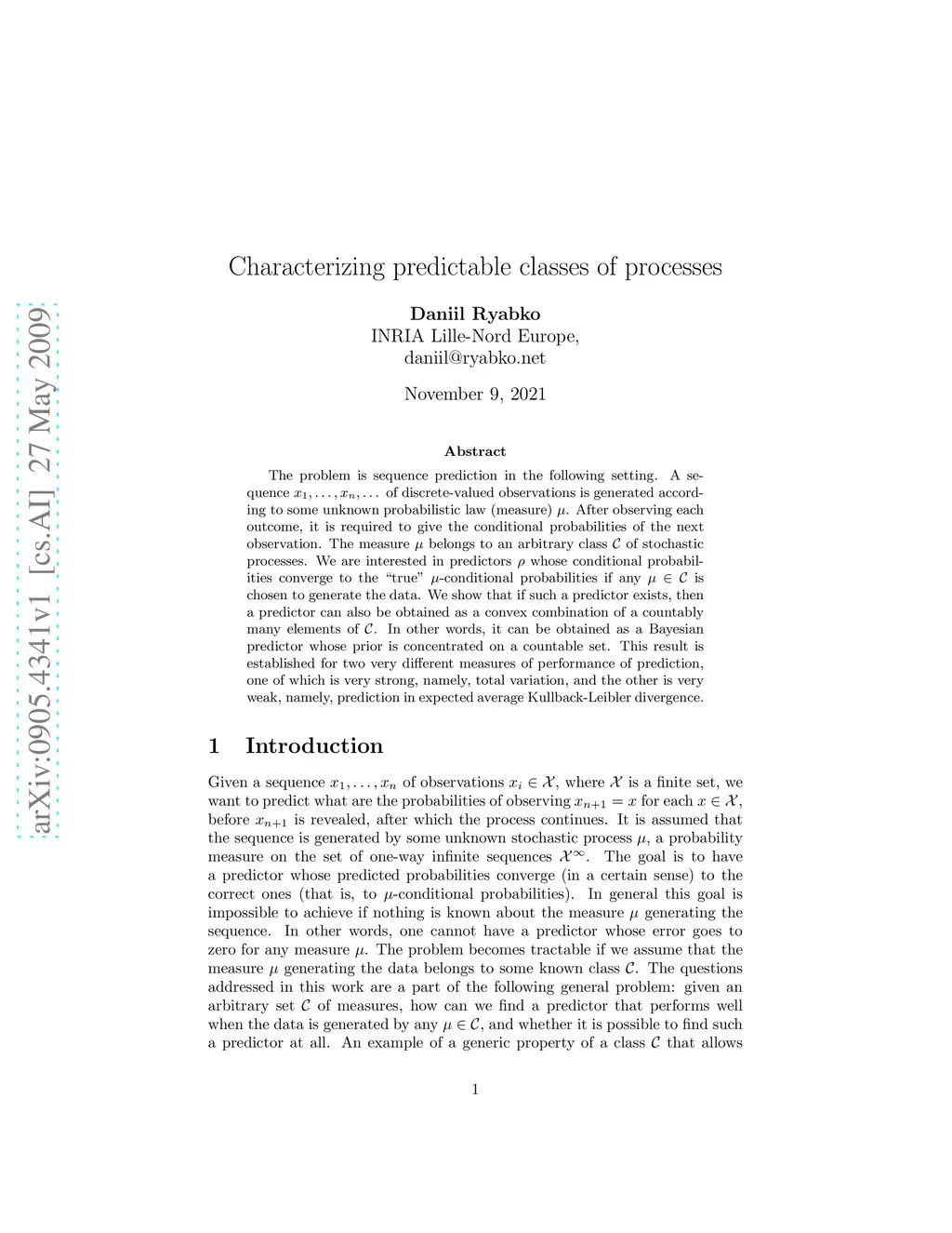 Characterizing predictable classes of processes