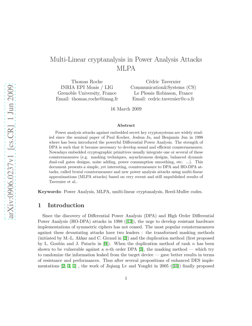 Power analysis attacks against embedded secret key cryptosystems are widely studied since the seminal paper of Paul Kocher, Joshua Ja, and Benjamin Jun in 1998 where has been introduced the powerful Differential Power Analysis. The strength of DPA is such that it became necessary to develop sound and efficient countermeasures. Nowadays embedded cryptographic primitives usually integrate one or several of these countermeasures (e.g. masking techniques, asynchronous designs, balanced dynamic dual-rail gates designs, noise adding, power consumption smoothing, etc. ...). This document presents a simple, yet interesting, countermeasure to DPA and HO-DPA attacks, called brutal countermeasure and new power analysis attacks using multi-linear approximations (MLPA attacks) based on very recent and still unpublished results of Tavernier et al..