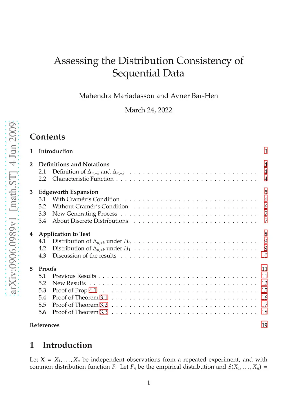 Given n observations, we study the consistency of a batch of k new observations, in terms of their distribution function. We propose a non-parametric, non-likelihood test based on Edgeworth expansion of the distribution function. The keypoint is to approximate the distribution of the n+k observations by the distribution of n-k among the n observations. Edgeworth expansion gives the correcting term and the rate of convergence. We also study the discrete distribution case, for which Cram\`er's condition of smoothness is not satisfied. The rate of convergence for the various cases are compared.