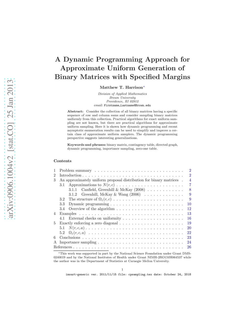 Consider the collection of all binary matrices having a specific sequence of row and column sums and consider sampling binary matrices uniformly from this collection. Practical algorithms for exact uniform sampling are not known, but there are practical algorithms for approximate uniform sampling. Here it is shown how dynamic programming and recent asymptotic enumeration results can be used to simplify and improve a certain class of approximate uniform samplers. The dynamic programming perspective suggests interesting generalizations.