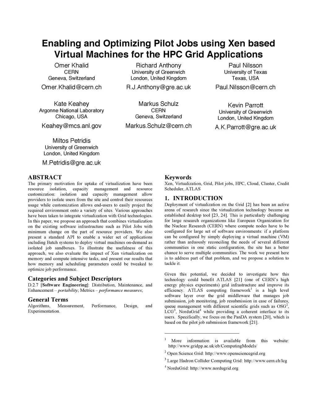 Enabling and Optimizing Pilot Jobs using Xen based Virtual Machines for
