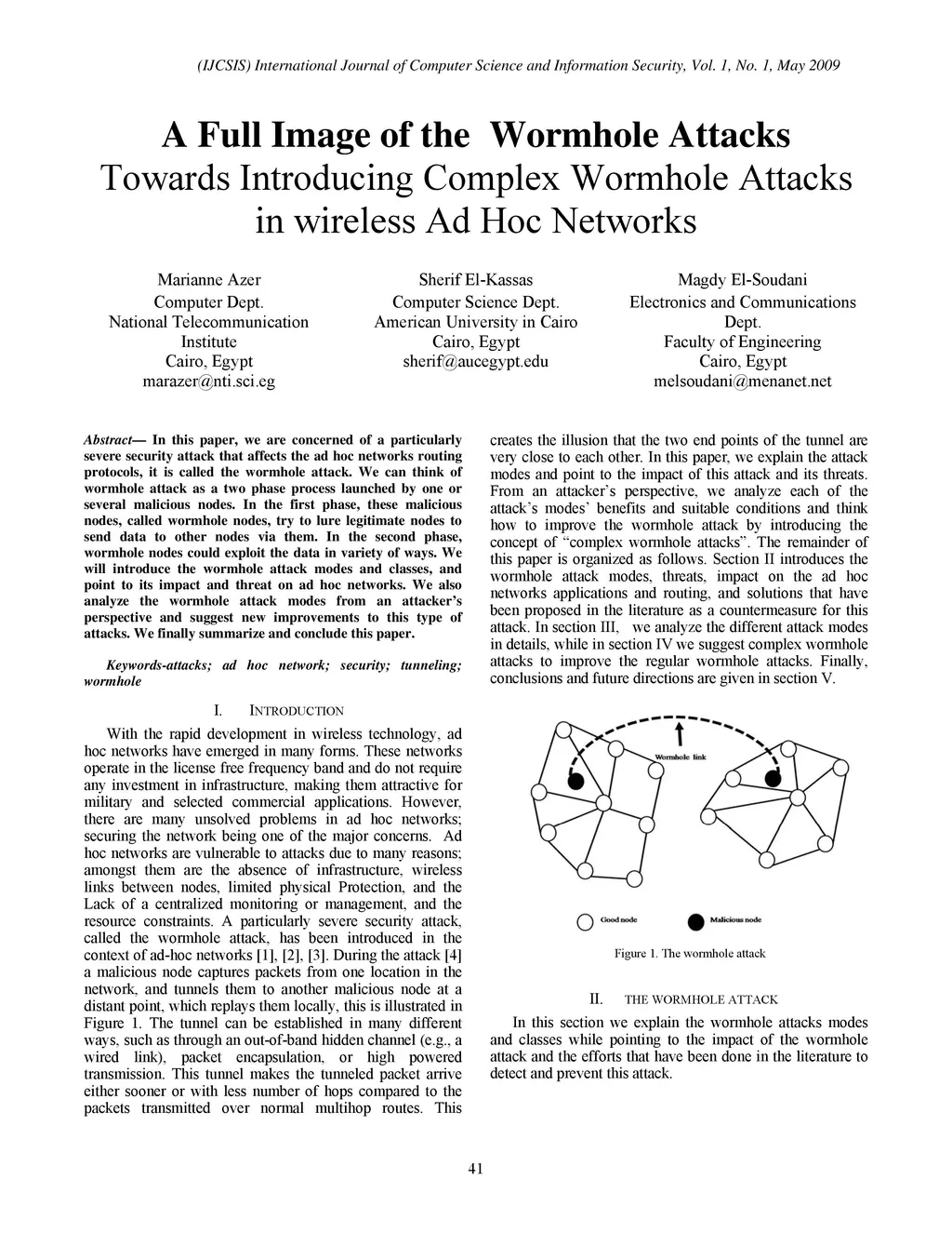 Wormhole Attacks in wireless Ad Hoc Networks