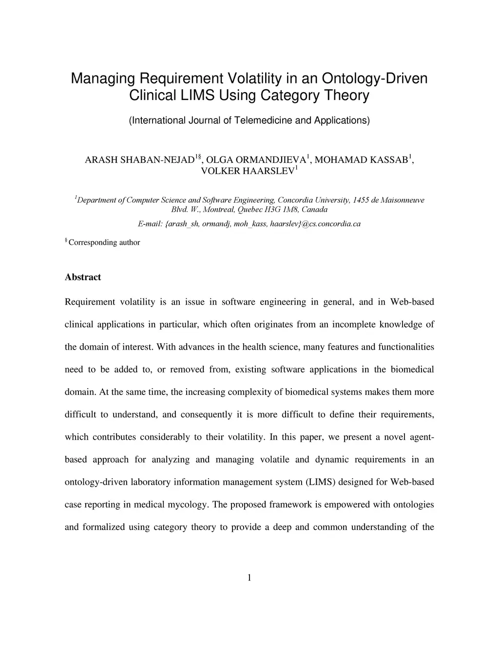 Requirement volatility is an issue in software engineering in general, and in Web-based clinical applications in particular, which often originates from an incomplete knowledge of the domain of interest. With advances in the health science, many features and functionalities need to be added to, or removed from, existing software applications in the biomedical domain. At the same time, the increasing complexity of biomedical systems makes them more difficult to understand, and consequently it is more difficult to define their requirements, which contributes considerably to their volatility. In this paper, we present a novel agent-based approach for analyzing and managing volatile and dynamic requirements in an ontology-driven laboratory information management system (LIMS) designed for Web-based case reporting in medical mycology. The proposed framework is empowered with ontologies and formalized using category theory to provide a deep and common understanding of the functional and nonfunctional requirement hierarchies and their interrelations, and to trace the effects of a change on the conceptual framework.