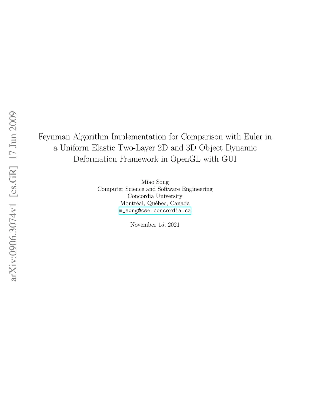 We implement for comparative purposes the Feynman algorithm within a C++-based framework for two-layer uniform facet elastic object for real-time softbody simulation based on physics modeling methods. To facilitate the comparison, we implement initial timing measurements on the same hardware against that of Euler integrator in the softbody framework by varying different algorithm parameters. Due to a relatively large number of such variations we implement a GLUI-based user-interface to allow for much more finer control over the simulation process at real-time, which was lacking completely in the previous versions of the framework. We show our currents results based on the enhanced framework. The two-layered elastic object consists of inner and outer elastic mass-spring surfaces and compressible internal pressure. The density of the inner layer can be set differently from the density of the outer layer; the motion of the inner layer can be opposite to the motion of the outer layer. These special features, which cannot be achieved by a single layered object, result in improved imitation of a soft body, such as tissue's liquid non-uniform deformation. The inertial behavior of the elastic object is well illustrated in environments with gravity and collisions with walls, ceiling, and floor. The collision detection is defined by elastic collision penalty method and the motion of the object is guided by the Ordinary Differential Equation computation. Users can interact with the modeled objects, deform them, and observe the response to their action in real-time and we provide an extensible framework and its implementation for comparative studies of different physical-based modeling and integration algorithm implementations.