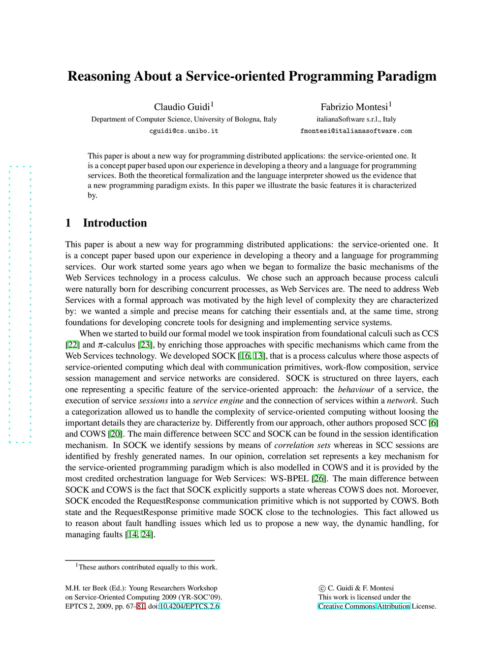 Reasoning About a Service-oriented Programming Paradigm