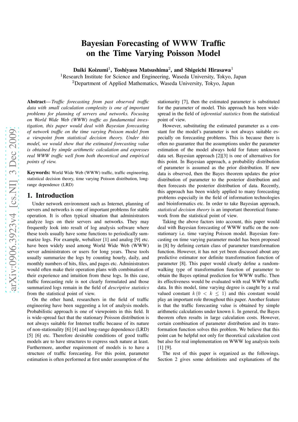 Bayesian Forecasting of WWW Traffic on the Time Varying Poisson Model