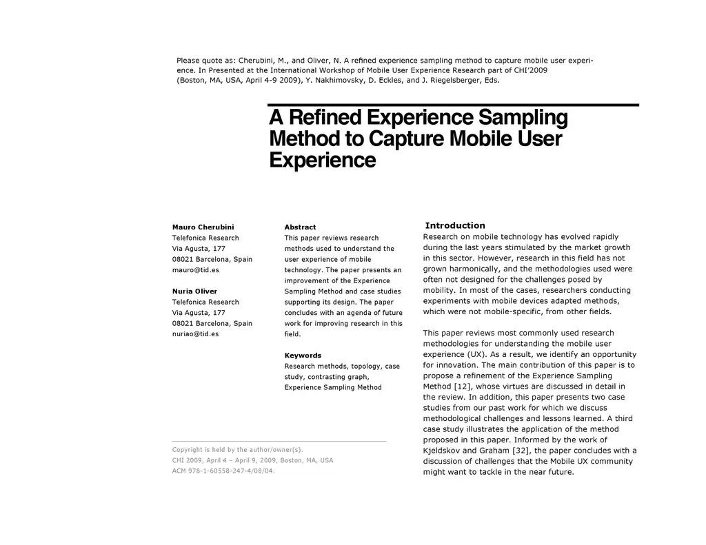 A Refined Experience Sampling Method to Capture Mobile User Experience