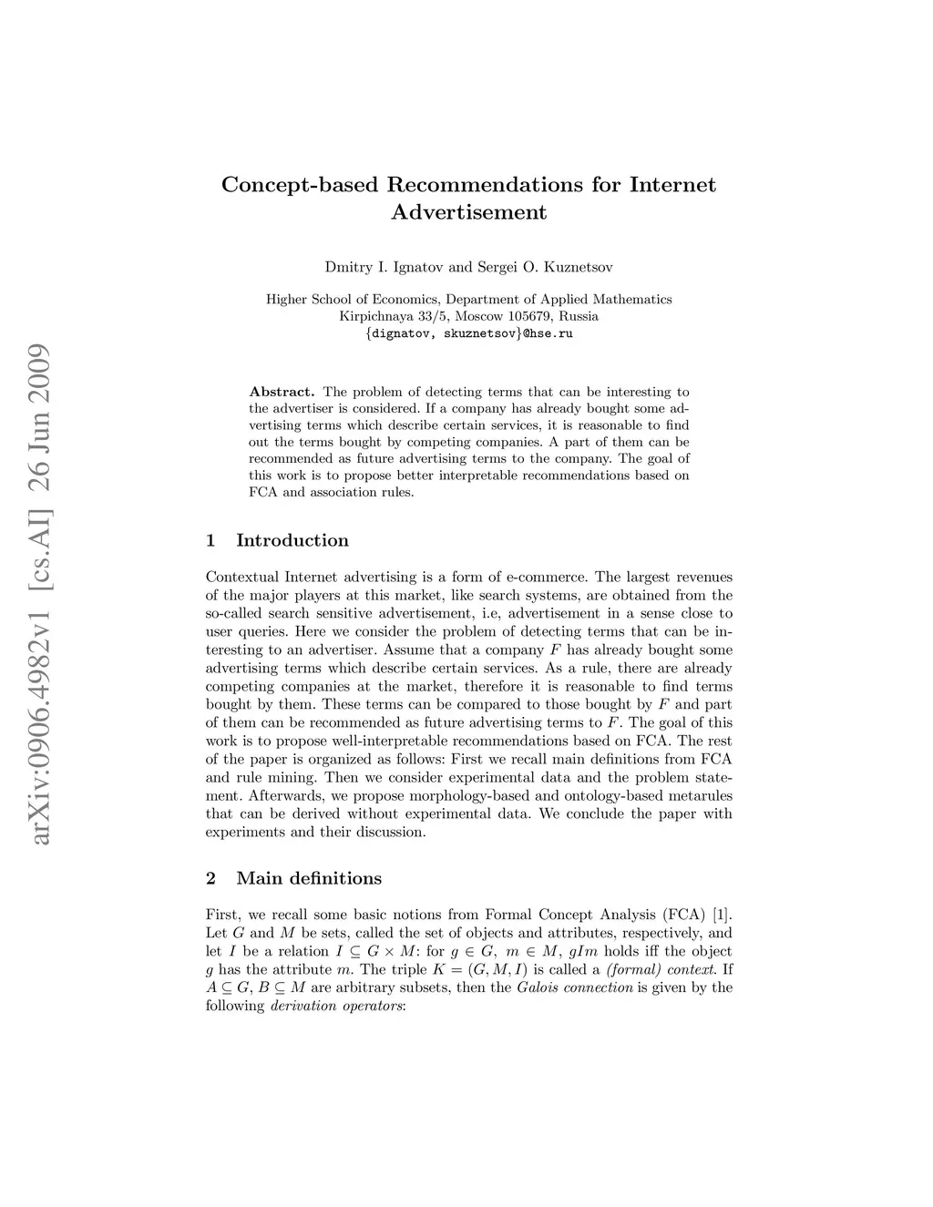 The problem of detecting terms that can be interesting to the advertiser is considered. If a company has already bought some advertising terms which describe certain services, it is reasonable to find out the terms bought by competing companies. A part of them can be recommended as future advertising terms to the company. The goal of this work is to propose better interpretable recommendations based on FCA and association rules.