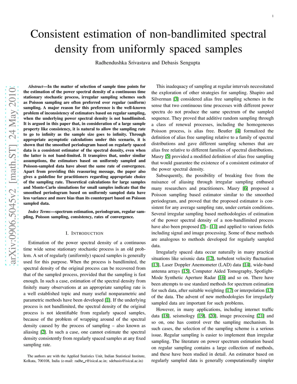 In the matter of selection of sample time points for the estimation of the power spectral density of a continuous time stationary stochastic process, irregular sampling schemes such as Poisson sampling are often preferred over regular (uniform) sampling. A major reason for this preference is the well-known problem of inconsistency of estimators based on regular sampling, when the underlying power spectral density is not bandlimited. It is argued in this paper that, in consideration of a large sample property like consistency, it is natural to allow the sampling rate to go to infinity as the sample size goes to infinity. Through appropriate asymptotic calculations under this scenario, it is shown that the smoothed periodogram based on regularly spaced data is a consistent estimator of the spectral density, even when the latter is not band-limited. It transpires that, under similar assumptions, the estimators based on uniformly sampled and Poisson-sampled data have about the same rate of convergence. Apart from providing this reassuring message, the paper also gives a guideline for practitioners regarding appropriate choice of the sampling rate. Theoretical calculations for large samples and Monte-Carlo simulations for small samples indicate that the smoothed periodogram based on uniformly sampled data have less variance and more bias than its counterpart based on Poisson sampled data.