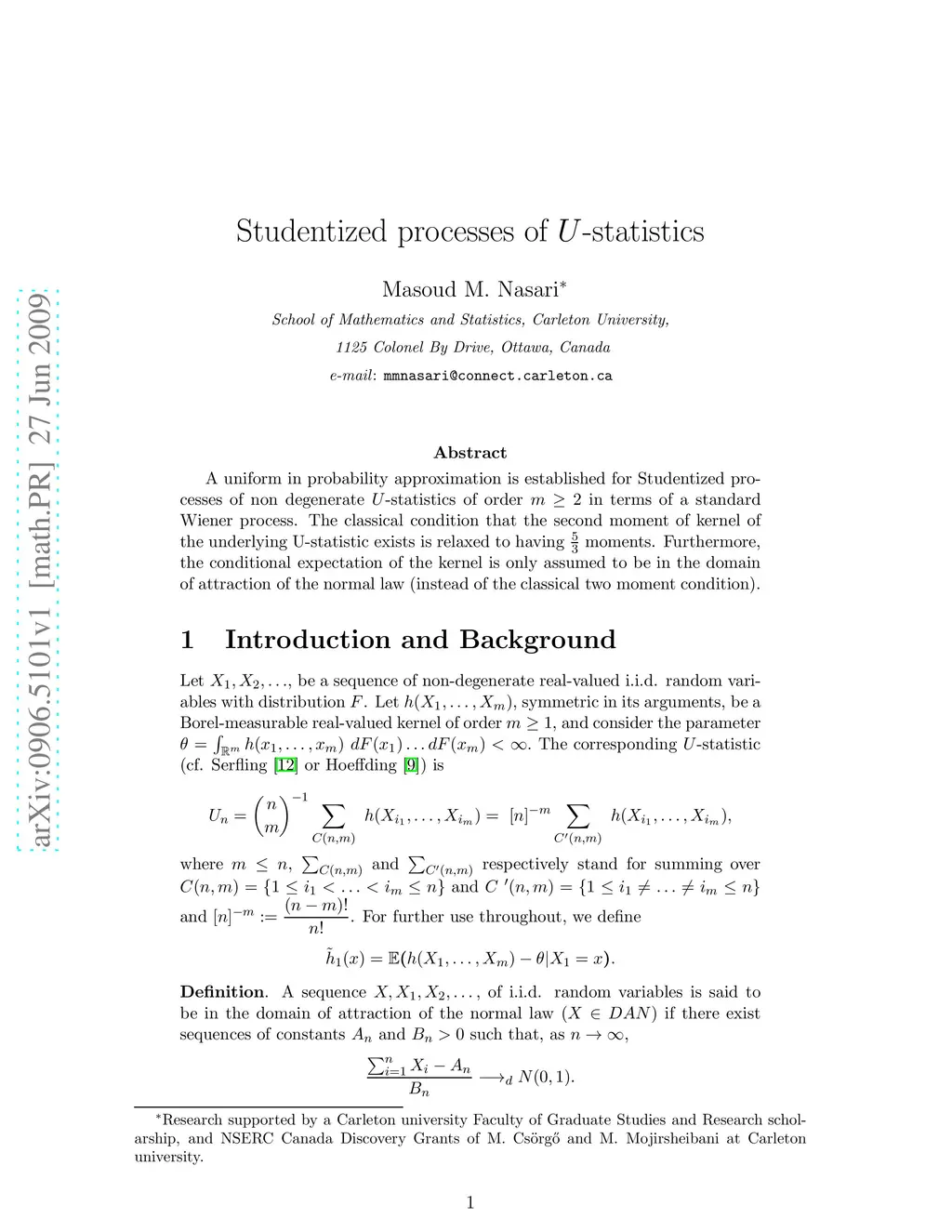 A uniform in probability approximation is established for Studentized processes of non degenerate U-statistics of order m greater or equal to 2 in terms of a standard Wiener process. The classical condition that the second moment of kernel of the underlying U-statistic exists is relaxed to having 5/3 moments. Furthermore, the conditional expectation of the kernel is only assumed to be in the domain of attraction of the normal law (instead of the classical two moment condition).