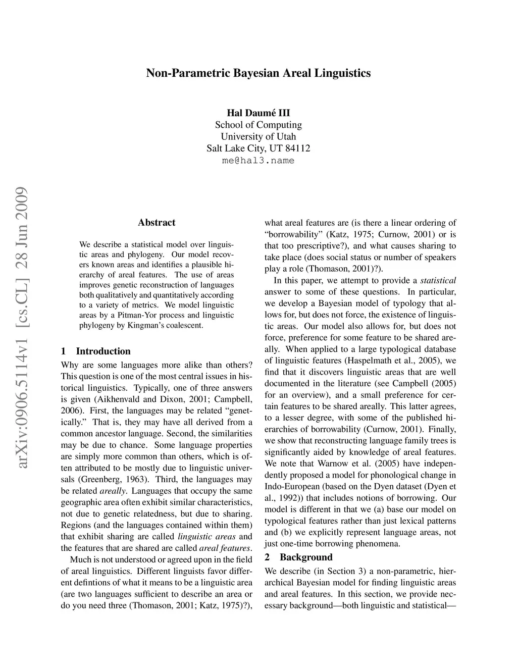 Non-Parametric Bayesian Areal Linguistics