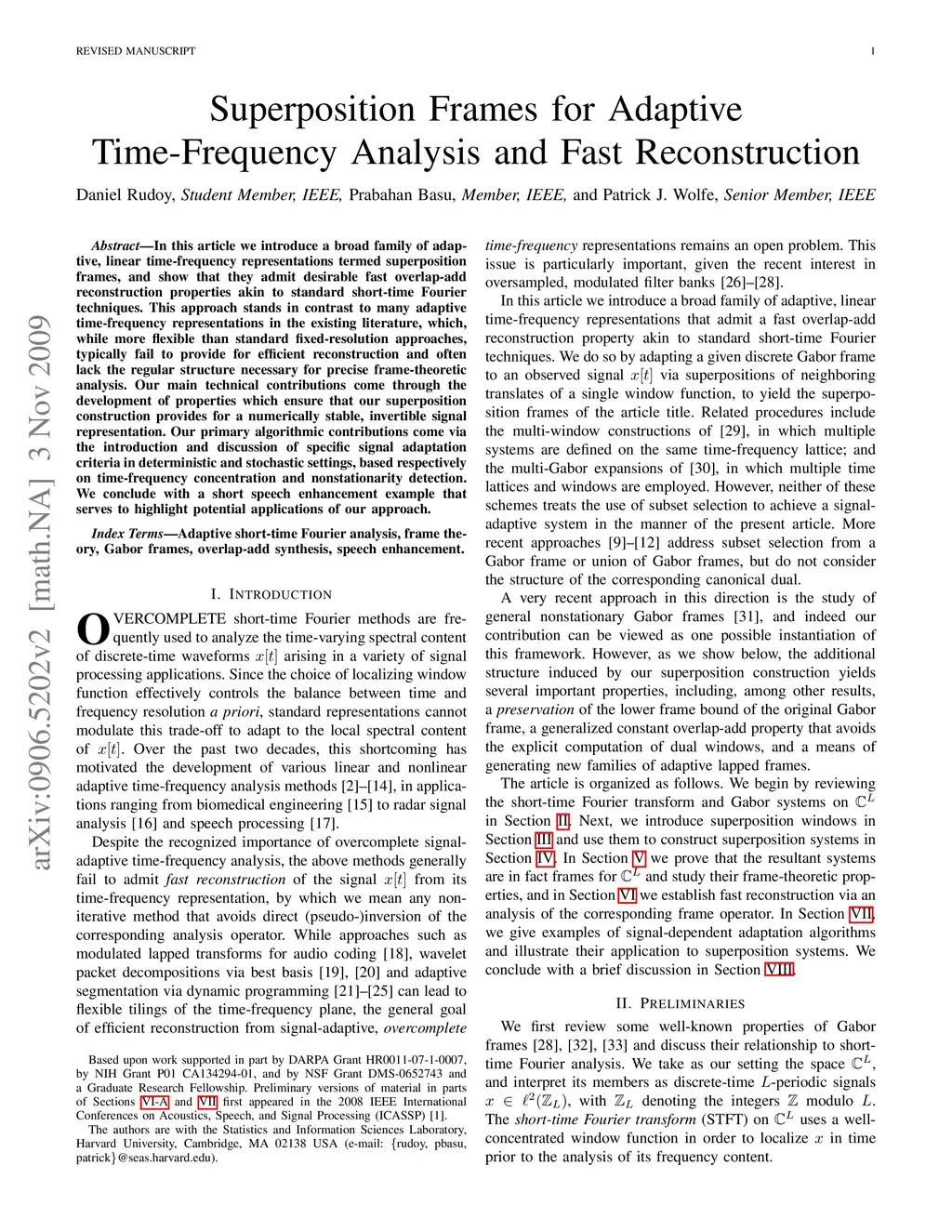 Superposition frames for adaptive time-frequency analysis and fast