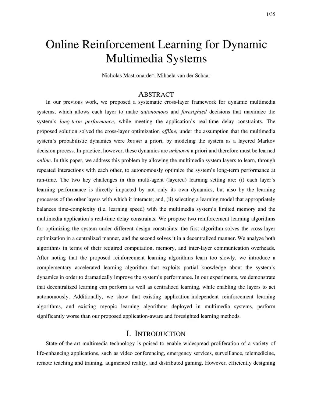 Online Reinforcement Learning for Dynamic Multimedia Systems