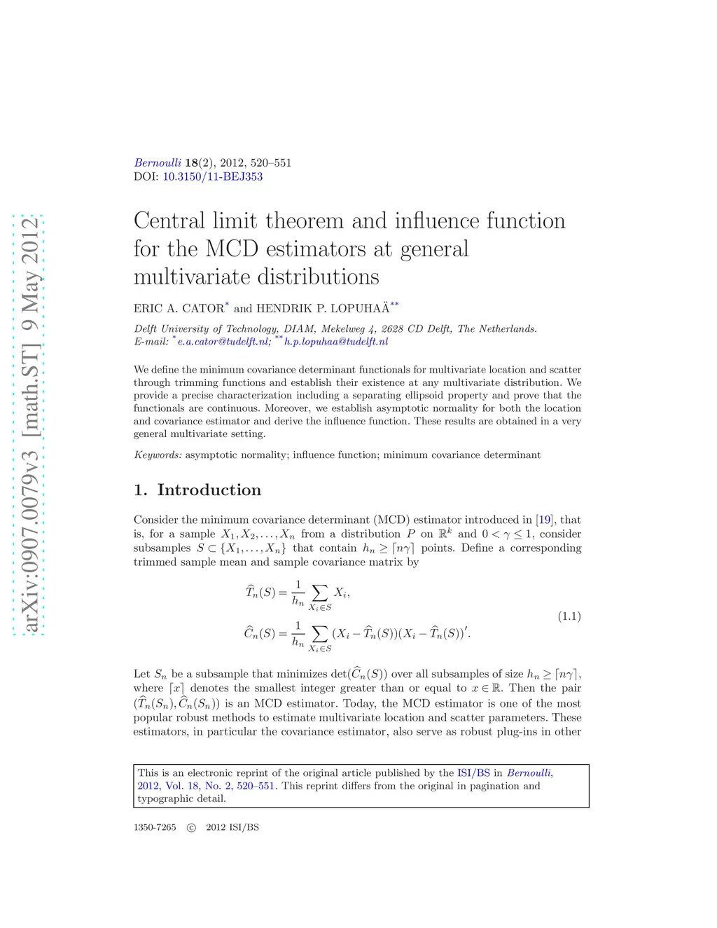 We define the minimum covariance determinant functionals for multivariate location and scatter through trimming functions and establish their existence at any multivariate distribution. We provide a precise characterization including a separating ellipsoid property and prove that the functionals are continuous. Moreover, we establish asymptotic normality for both the location and covariance estimator and derive the influence function. These results are obtained in a very general multivariate setting.