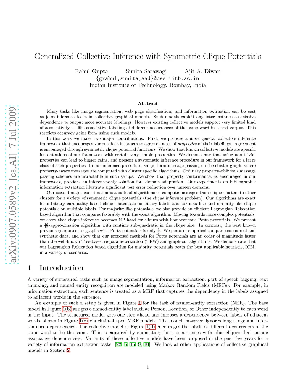 Generalized Collective Inference with Symmetric Clique Potentials