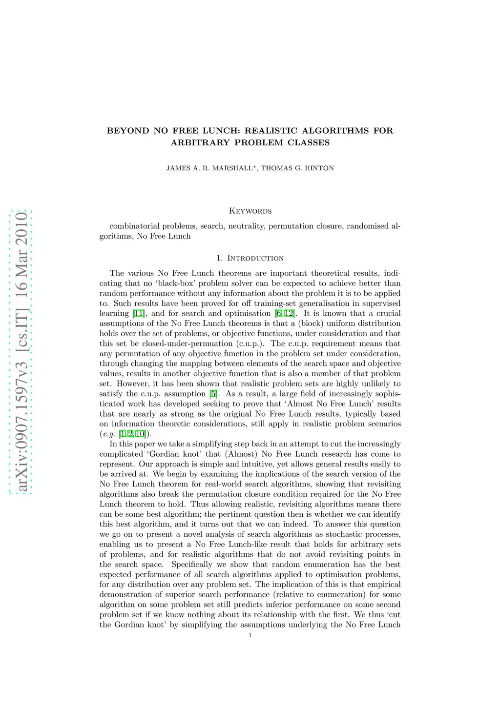 Beyond No Free Lunch: Realistic Algorithms for Arbitrary Problem Classes