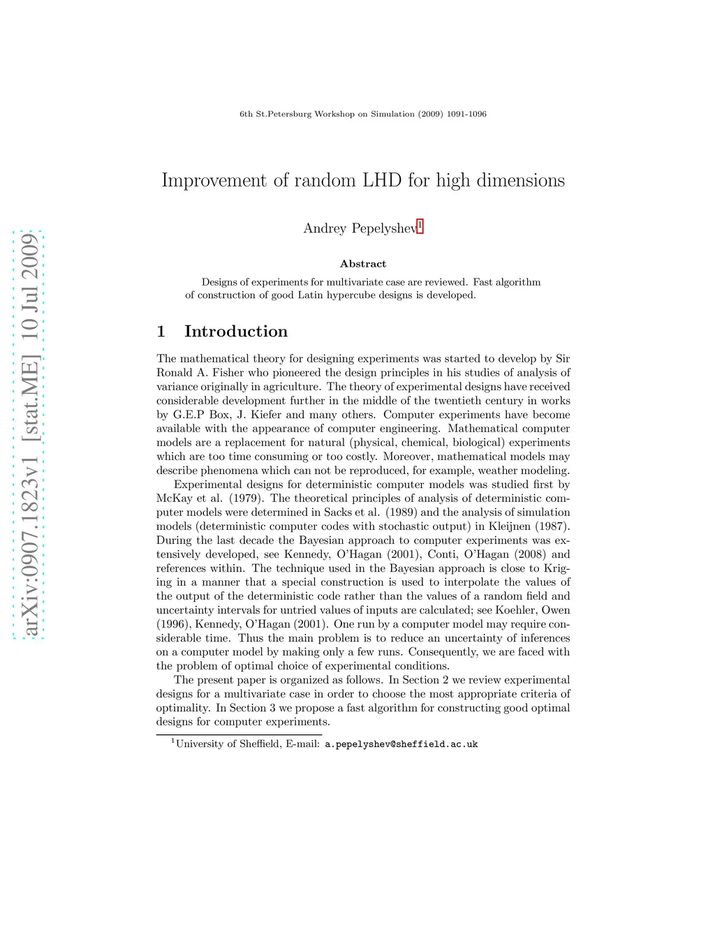 Designs of experiments for multivariate case are reviewed. Fast algorithm of construction of good Latin hypercube designs is developed.
