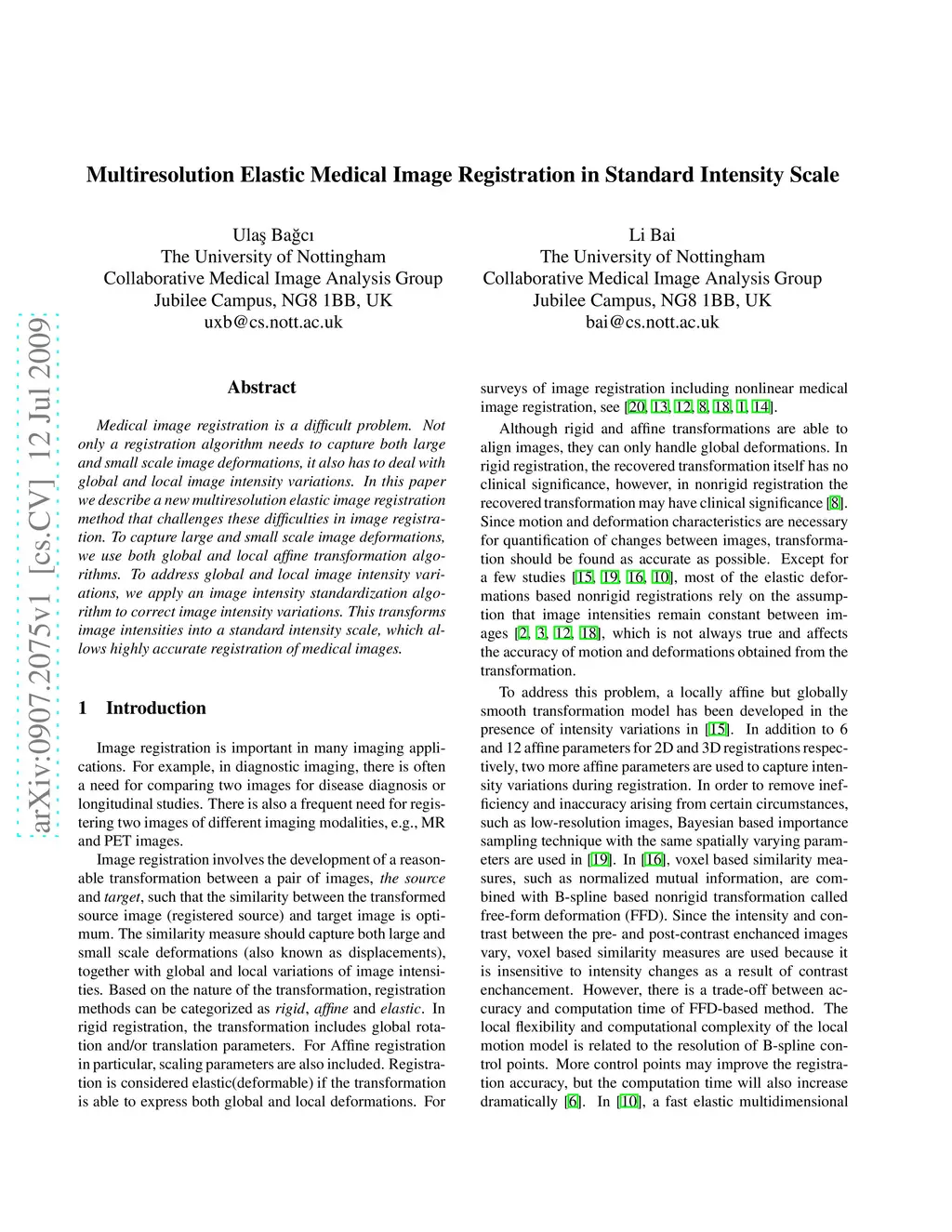 Multiresolution Elastic Medical Image Registration in Standard Intensity