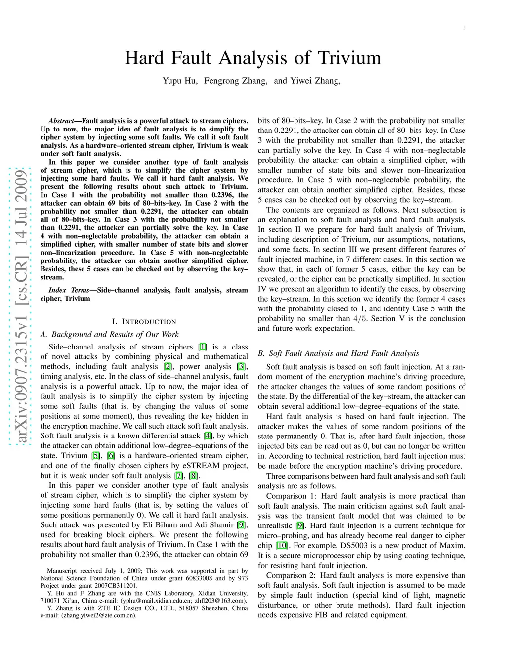 Hard Fault Analysis of Trivium