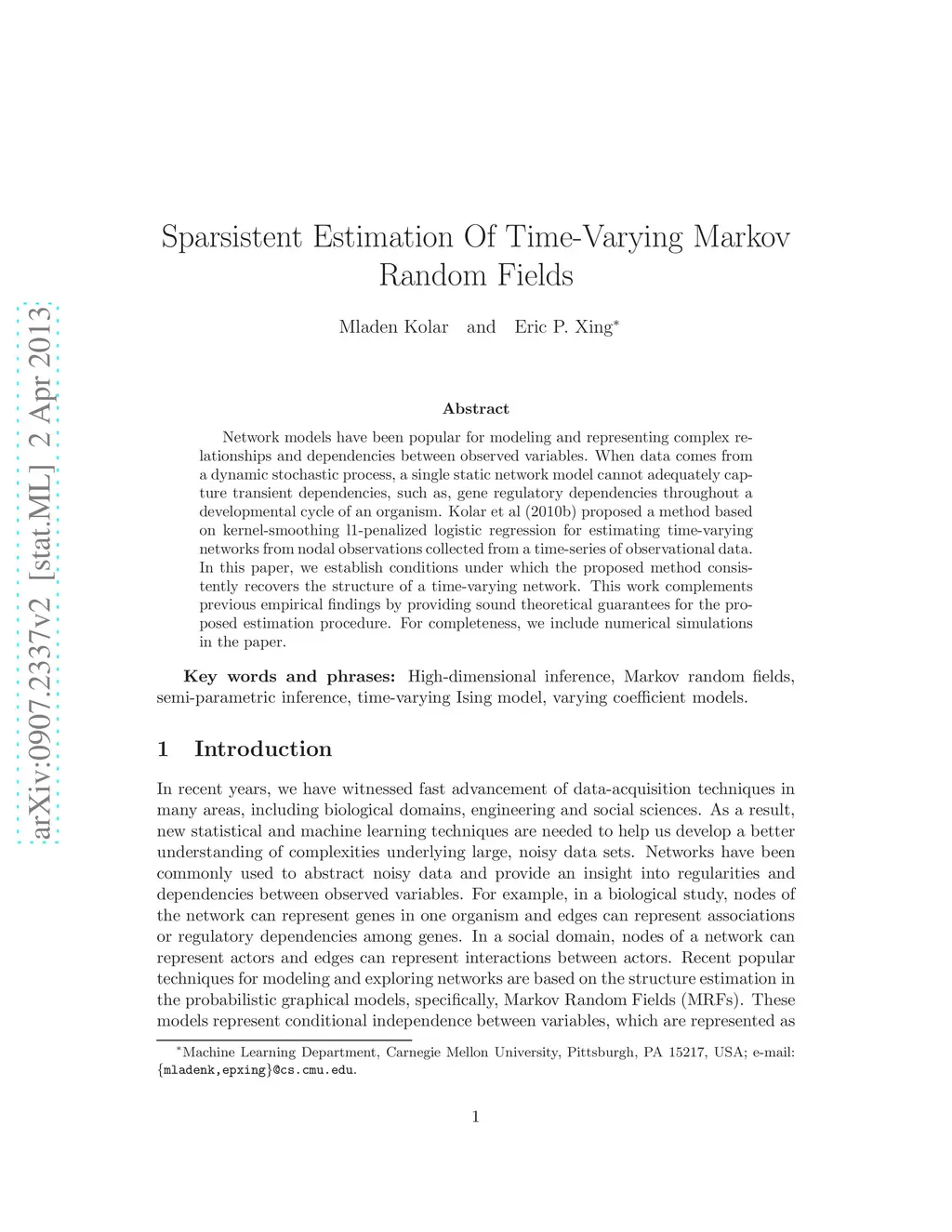 Sparsistent Estimation of Time-Varying Discrete Markov Random Fields