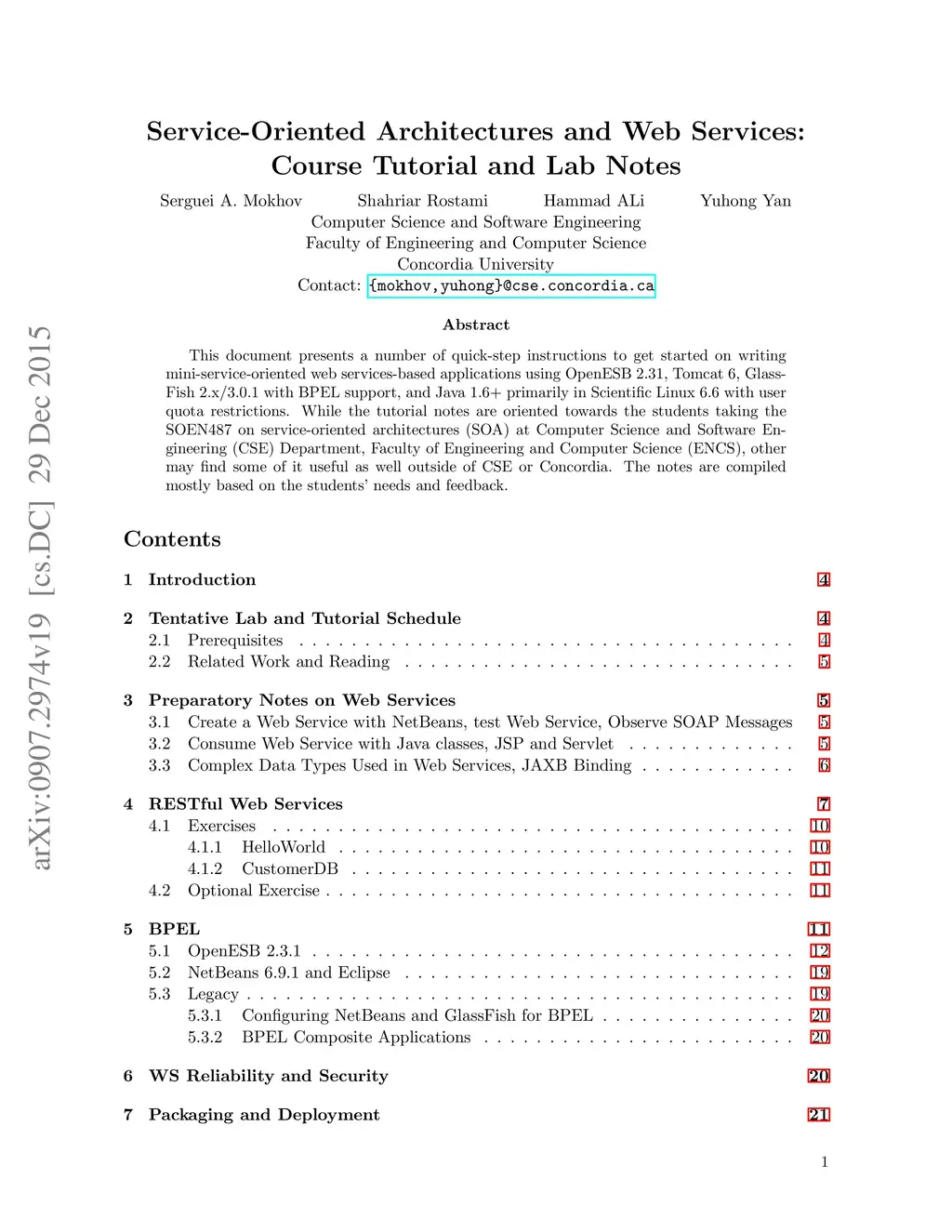 Service-Oriented Architectures and Web Services: Course Tutorial Notes
