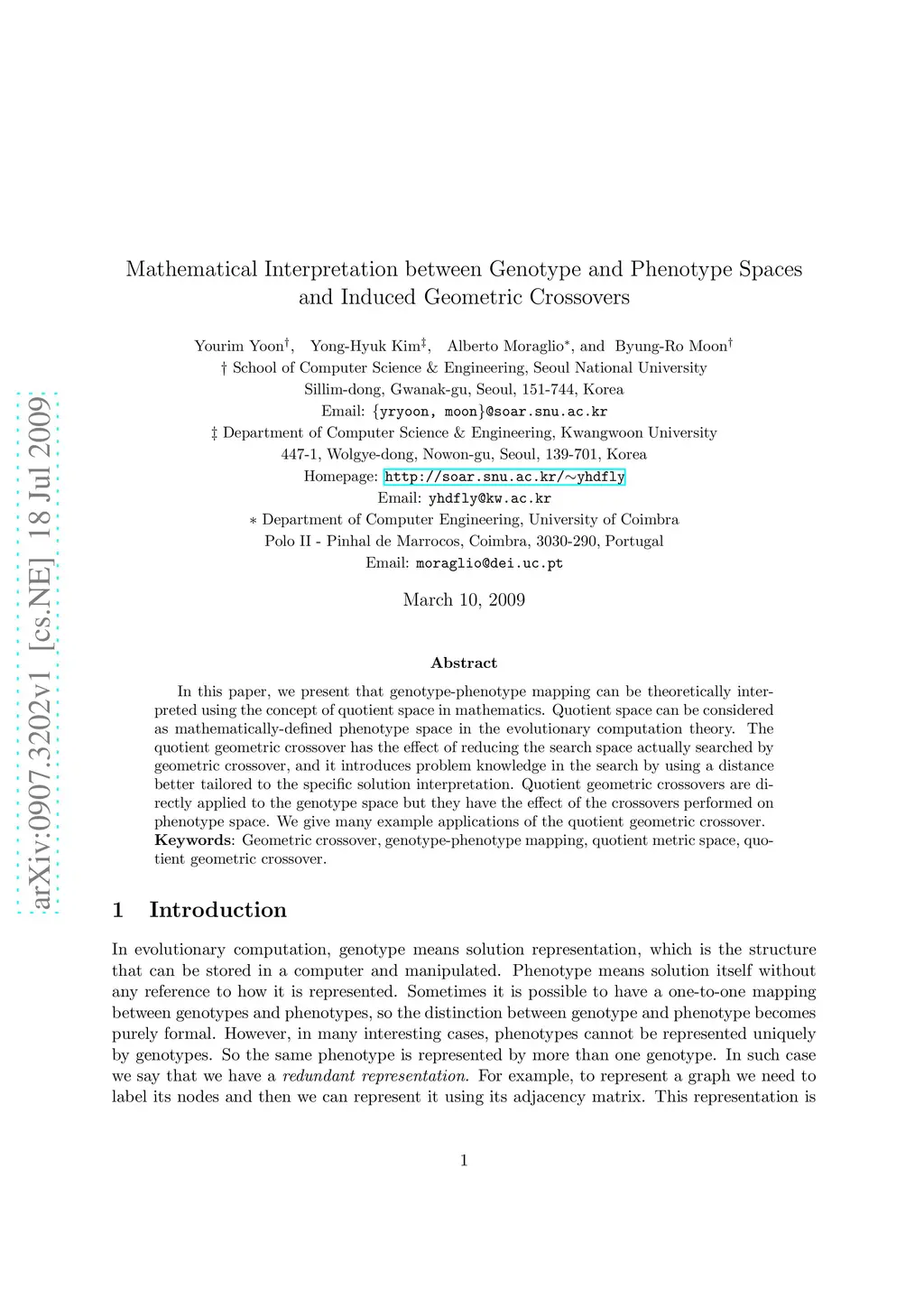 In this paper, we present that genotype-phenotype mapping can be theoretically interpreted using the concept of quotient space in mathematics. Quotient space can be considered as mathematically-defined phenotype space in the evolutionary computation theory. The quotient geometric crossover has the effect of reducing the search space actually searched by geometric crossover, and it introduces problem knowledge in the search by using a distance better tailored to the specific solution interpretation. Quotient geometric crossovers are directly applied to the genotype space but they have the effect of the crossovers performed on phenotype space. We give many example applications of the quotient geometric crossover.