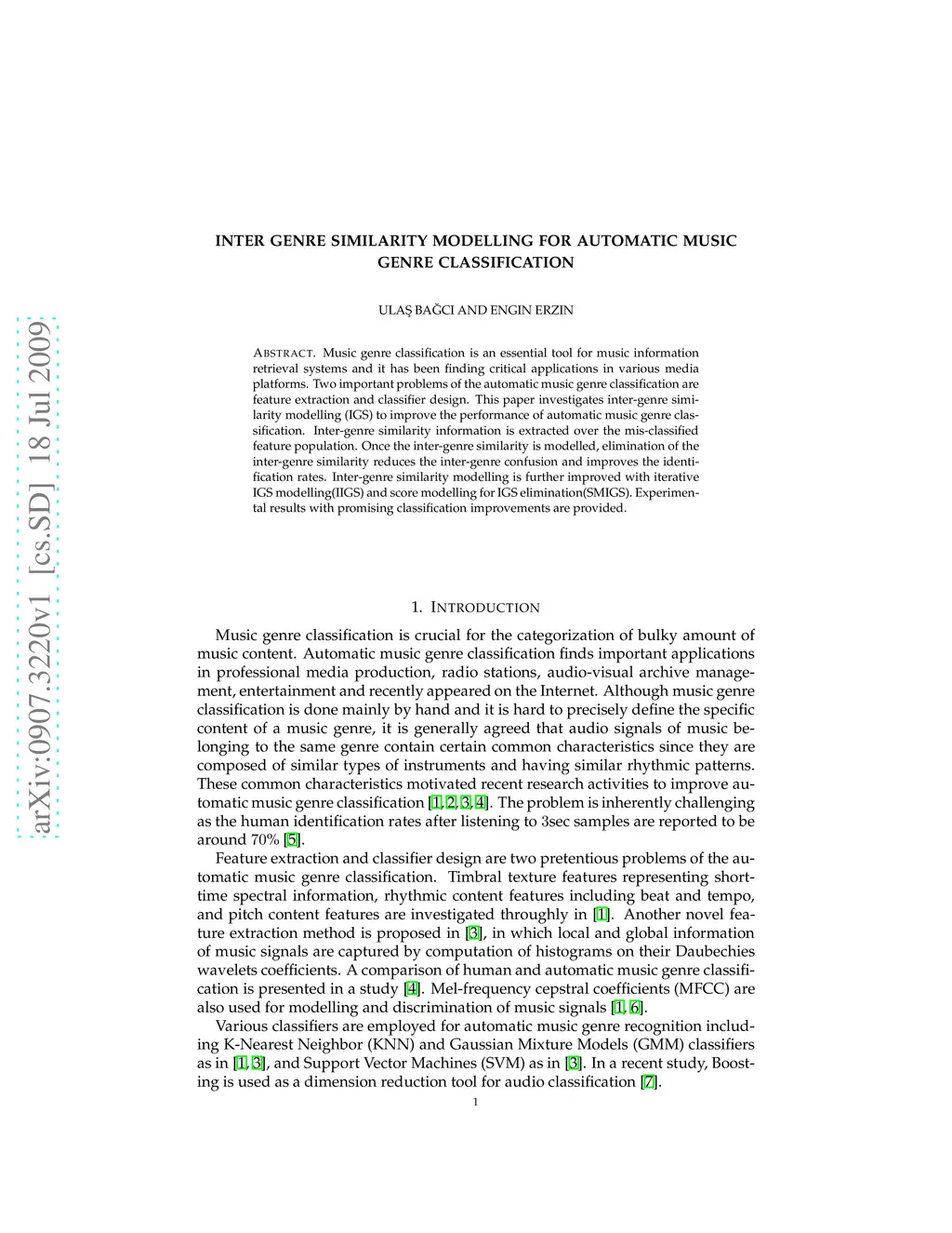 Inter Genre Similarity Modelling For Automatic Music Genre