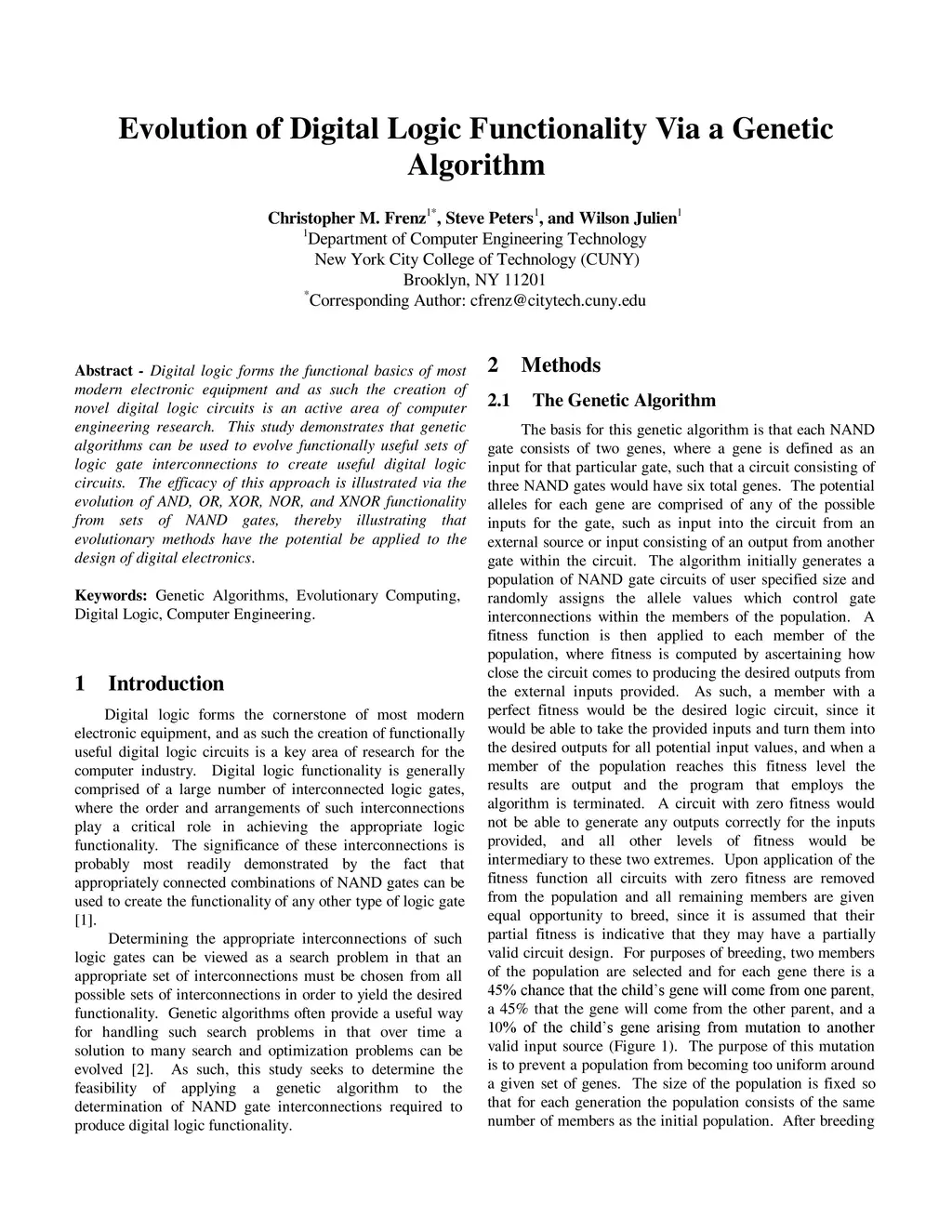 Digital logic forms the functional basics of most modern electronic equipment and as such the creation of novel digital logic circuits is an active area of computer engineering research. This study demonstrates that genetic algorithms can be used to evolve functionally useful sets of logic gate interconnections to create useful digital logic circuits. The efficacy of this approach is illustrated via the evolution of AND, OR, XOR, NOR, and XNOR functionality from sets of NAND gates, thereby illustrating that evolutionary methods have the potential be applied to the design of digital electronics.