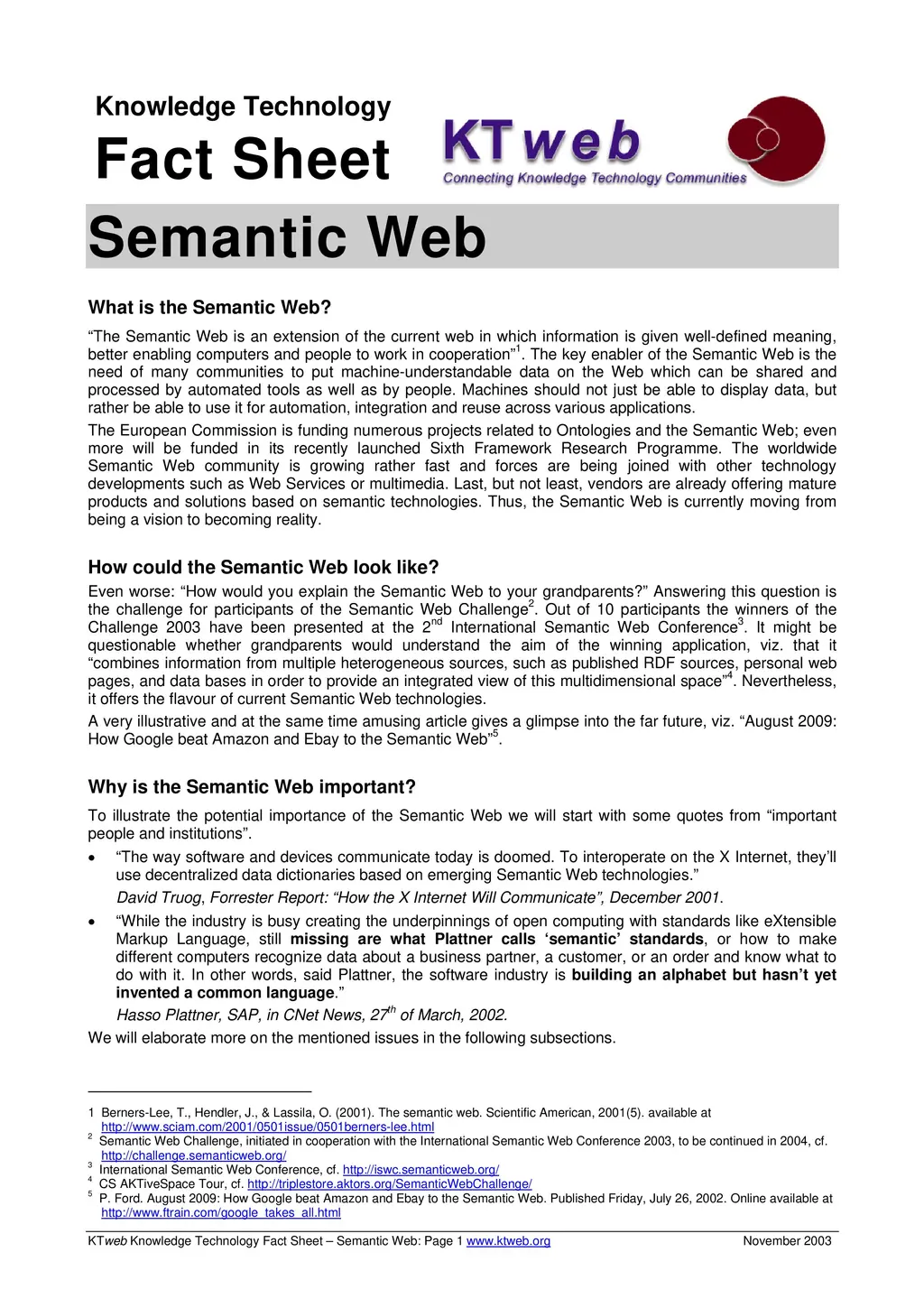 Fact Sheet on Semantic Web