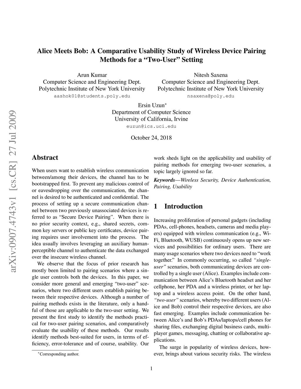 Alice Meets Bob: A Comparative Usability Study of Wireless Device
